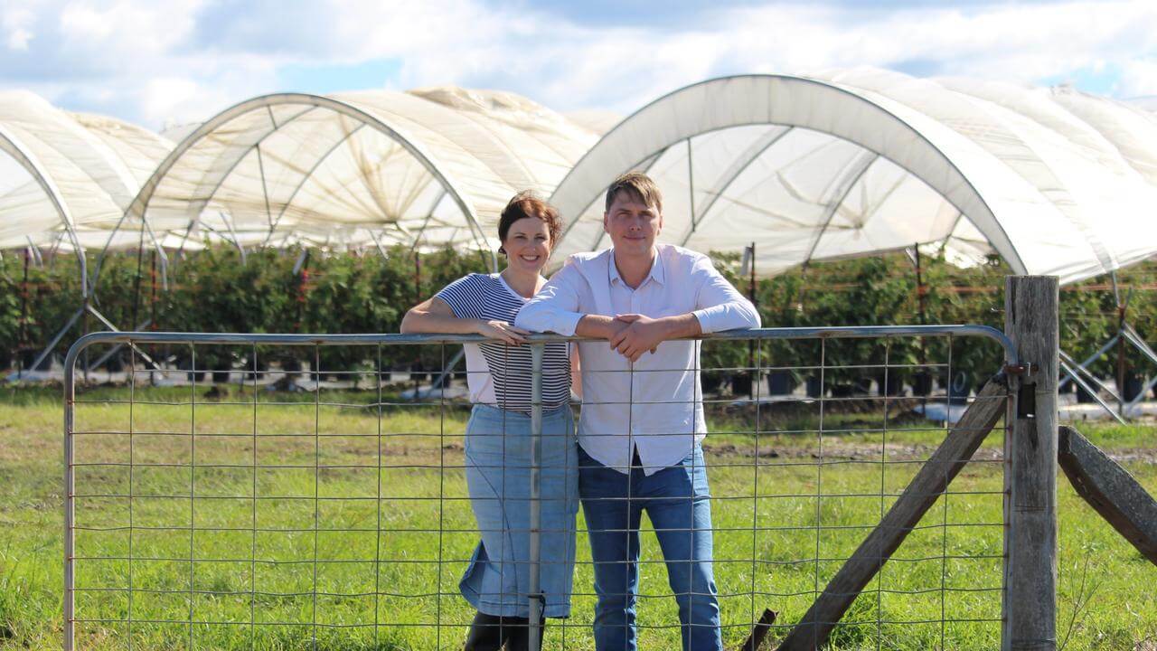 Allison and Stuart McGruddy at their My Berries farm in Caboolture. Their berries will be used in a new Tim Tam flavour.